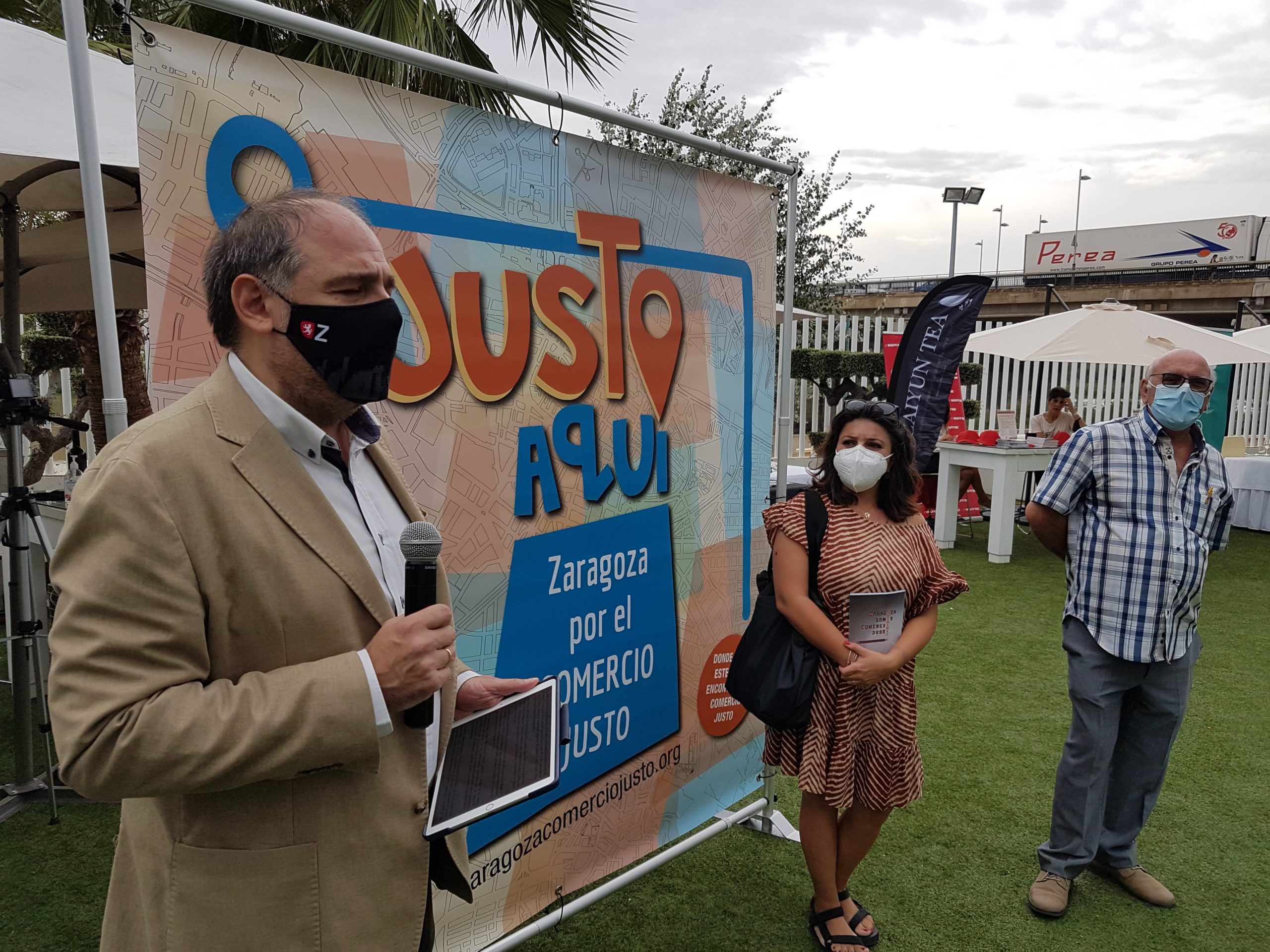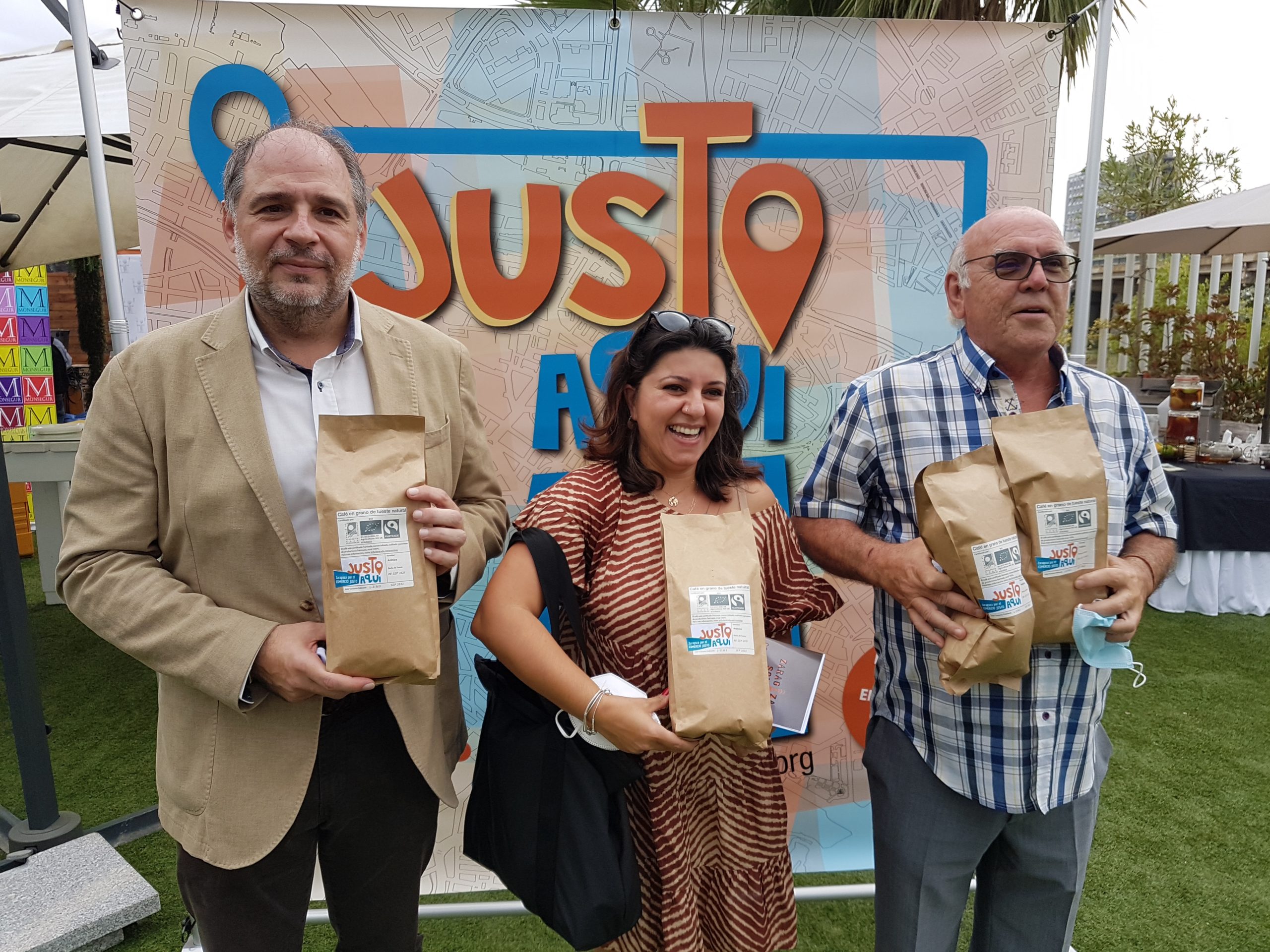 El lunes 13 de septiembre a las 17 horas la presidenta de la FAS, Ceren Gergeroglu y el Concejal de Acción Social y Familia del Ayuntamiento de Zaragoza, Ángel Lorén, formalizaron la donación de 100 kg. de café en grano certificado de Comercio Justo, para la Asociación de Cafés y Bares de Zaragoza que será repartido entre sus asociados.